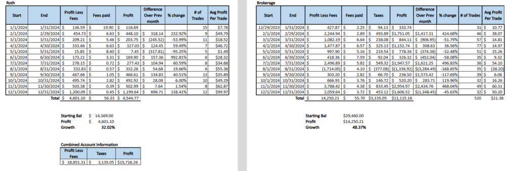 - Effortless Data Management: Log basic trade details like Ticker Symbol, Quantity, and Entry/Exit Prices into an intuitive interface. This feeds into a dynamic Dashboard View where you can instantly see your open and closed positions across both your Taxable and Non-Taxable accounts. See how your trades stack up month by month!